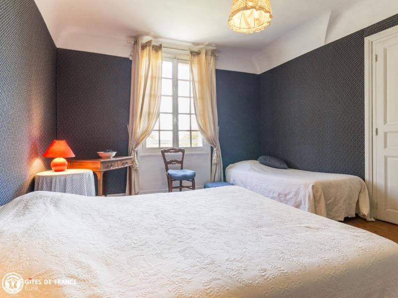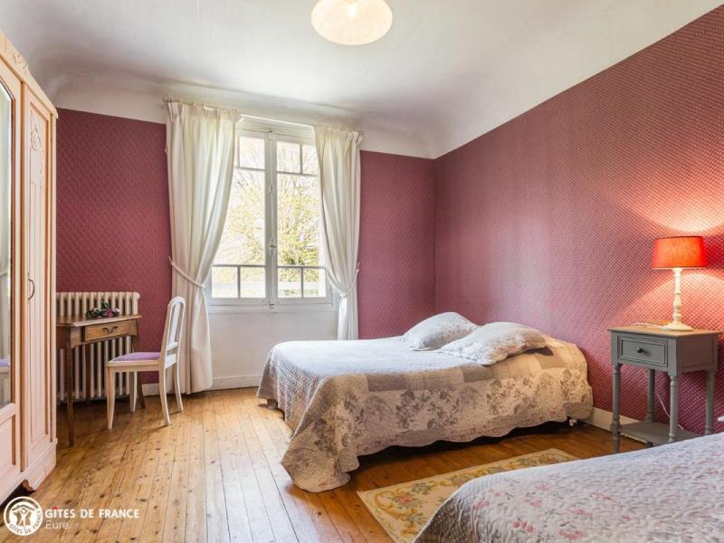 02 32 35 52 07 domainedelacoudraye@gmail.comBienvenue au Domaine de la Coudraye, belle et grande maison située dans une ferme où canards et oies s'ébattent. Dès l'arrivée, le parc et la belle bâtisse vous plongent dans l'ambiance. A l'étage deux belles chambres spacieuses et parquetées, aux beaux meubles anciens avec chacune sa salle d'eau privative. Les petits-déjeuners vous seront servis au rez-de-chaussée, dans une salle à la hauteur sous plafond atypique dans laquelle vous profiterez également d'un coin salon. A l'extérieur, vous profiterez du grand parc avec en bonus, un cours de tennis ! Vous découvrir ici les produits de la ferme. Aux alentours, vous découvrirez quelques-unes des pépites de l'Eure : le ravissant village du Bec-Hellouin et son abbaye, l'Arboretum du domaine d'Harcourt ou encore le majestueux domaine du Champs de Bataille. Plus au nord, vous êtes à une quarantaine de kilomètres du centre de Rouen. A L'ETAGE : La chambre bleue pour trois personnes, avec un lit double en 140X190 et un lit simple 90X190. Beau parquet et cheminée décorative. Salle de bain privative avec wc, attenante à la chambre. La chambre rose pour quatre personnes, avec deux lits doubles en 140X190, armoire et bureau. Salle d'eau et wc indépendants, tous deux privatifs et attenants à la chambre. Pièce réservée aux hôtes, faisant office de salon détente et salle de petit-déjeuner, située dans la partie gauche du bâtiment. Grand jardin avec court de tennis.
