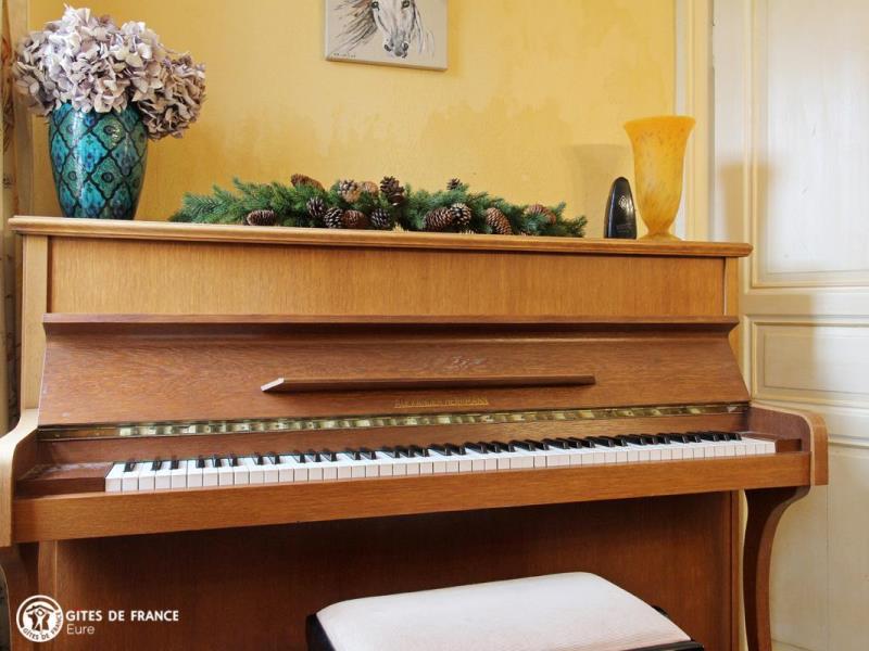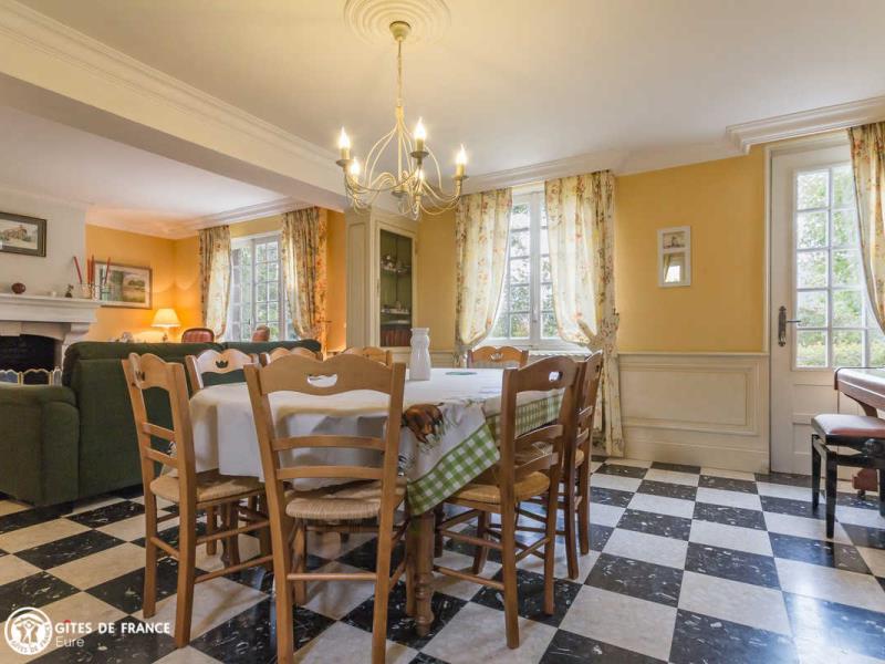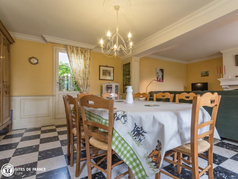 Dans un petit village très sympa, cette élégante longère à pans de bois est une maison de vacances vraiment idéale pour vos séjours en famille ou entre amis, à la campagne. Elle vous offre beaucoup d'espace grâce à ses belles pièces de vie et ses six jolies chambres, mais aussi un charmant jardin clos rien que pour vous. L'ambiance est chaleureuse et met en valeur le caractère de cette maison ancienne dans un esprit "campagne chic", avec toujours le souci de votre confort. Un autre point fort ici, les loisirs : plein de jeux de société, de jeux extérieurs entre portique, ping-pong, badminton, ballons, quilles nordiques, jeu de raquettes ou babyfoot dans un espace couvert. Isabelle et Bertrand exploitent leur ferme céréalière juste à côté. A deux pas, la petite ville du Neubourg, dynamique avec son marché, ses commerces et loisirs. A ne pas manquer un peu plus loin, le superbe château du Champ de Bataille et ses somptueux jardins, les villages de caractère d'Harcourt et le Bec Hellouin. Au RDC : entrée sur une première pièce de vie avec coin repas donnant sur la cuisine bien équipée et le séjour avec salle à manger, salon devant la cheminée et piano accordé. Première chambre avec lit double 140X190 et coin bureau et seconde chambre avec lit double 160X200 et salle d'eau privative avec wc. Salle d'eau avec accès indépendant comprenant grande douche et double vasque. Wc indépendants. A L'ÉTAGE : La chambre rose et la chambre bleue, toutes deux légèrement mansardées et avec chacune un lit double 140X190. Deux chambres individuelles: la petite chambre et la chambre aux oiseaux, avec chacune un lit simple pour une personne en 90X190. Espace détente sur le palier, salle de bain et wc indépendants. Grand jardin clos d'environ 1000 m², garage.