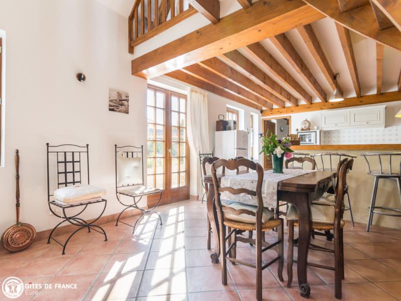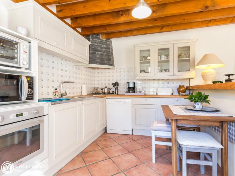 Une jolie bulle de détente dans une dynamique bourgade très sympathique, voici ce que vous propose l'Hibiscus. Une petite maison ancienne avec le charme de ses poutres apparentes, remise au goût du jour et élégamment décorée par Antonella et Edouard, vos hôtes, sur un jardin adorable et clos de beaux murs en bauge, fleuri et arboré, qui invite à s'y relaxer et y passer de vrais bons moments. Ils ont créé un lieu vraiment confortable en mixant mobilier ancien et touches actuelles, chaleureux et très bien équipé avec notamment une salle de bain par chambre. Vous êtes à pied d'oeuvre pour aller faire vos petites emplettes à pied où vous n'aurez que l'embarras du choix côté boutiques et bons produits, mais aussi pour vos loisirs : piscine ludique, tennis, aire de jeux, chemins de randonnée, cinéma, vélodrome et hippodrome, terrain de pétanque couvert sont accessibles à pied. La région est riche côté tourisme : le château du Champ de Bataille est juste magique, tout comme le Bec Hellouin. Entrée au RDC sur la pièce de vie lumineuse et chaleureuse avec la cuisine très bien équipée, séparée par le bar avec tabourets, le coin repas confortable et le salon, cocoon, près du poêle à bois. Egalement une chambre double avec lit double 140X190, bureau et télévision, une salle de bain avec wc, une salle d'eau avec une grande douche à l'italienne et doubles vasques et un second wc indépendant. A l'étage, une mezzanine mansardée est aménagée en une seconde chambre avec lit double 140X190 et lit d'appoint pour un enfant, en 80X190. Toute la maison fait face au jardin. La terrasse, à la sortie de la cuisine, vous offrira des repas sympas face au joli jardin clos de murs de 700 m² avec transats et bains de soleil pour la détente et jeux à disposition : badminton, fléchettes, petite piscine gonflable, ballons. Le marché du Neubourg, le mercredi, est réputé, comme les marchés au foie gras en fin d'année. GR26 à 400m et Voie verte à 1.3 km.