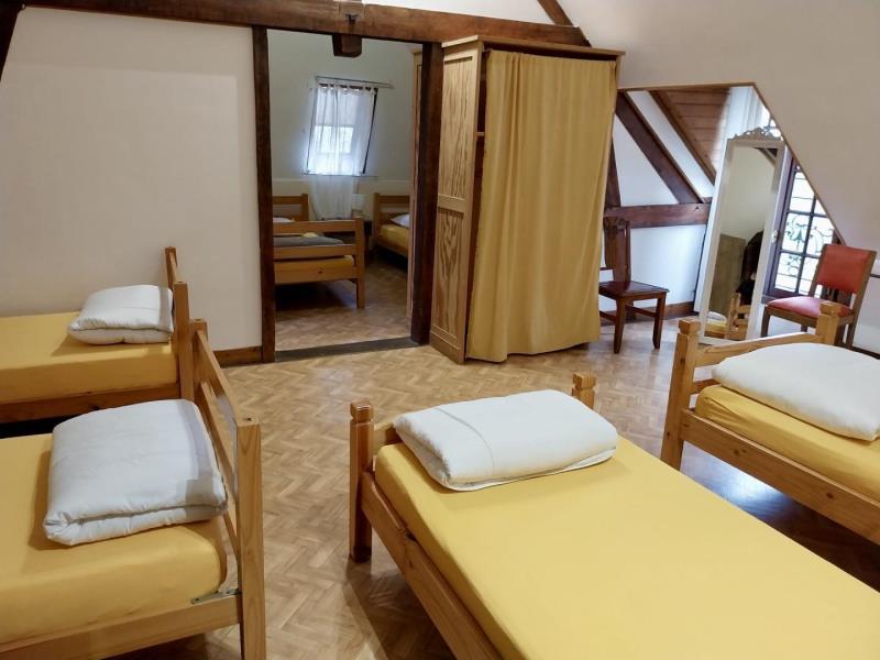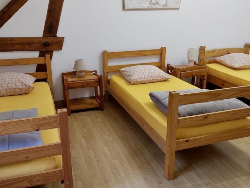 Sur la frontière du riche plateau du Neubourg et des bois du Champ de Bataille, ce grand gîte s'ouvre à la lisière des champs juste à l'entrée de l'avenue du hameau. Aménagé dans ce qui fut l'écurie de l'ancienne ferme et ses annexes, il est chaleureux et spacieux. Vous apprécierez son cadre verdoyant et arboré avec un jardin sympa pour prendre ses repas au grand air ou les jeux. Le gîte est idéalement situé à deux pas du superbe château du Champ de Bataille, de la petite ville du Neubourg qui vous offre beaucoup de commerces et loisirs, et de la voie verte qui vous amène vers l'abbaye du Bec Hellouin. Au rez de chaussée : entrée, grande salle de 80 m² avec cheminée, espace repas et coin salon, cuisine à l'équipement professionnel, un second petit séjour, coin repas et salon, 1 chambre (1 personne) avec salle d'eau et wc, 1 salle d'eau avec wc accessible PMR et une chambre double avec accès direct sur le jardin. A l'étage, 4 chambres (2 pour 3 personnes, 1 pour 5 personnes et 1 pour 7 personnes), salle d'eau pour chacune, 3 wc. Accessible par l'extérieur, une nouvelle pièce de vie avec petit coin cuisine donne accès à une chambre double en RDC avec salle d'eau et wc privés et à 3 chambres doubles à l'étage, chacune avec salle d'eau et wc privés. Terrain de volley et pétanque. Ping pong.