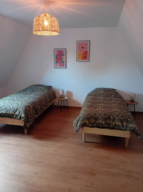06 32 30 91 18 cdeparrois27@gmail.comBienvenue dans notre charmant gîte à la campagne, idéalement situé dans un cadre paisible et verdoyant. Ce gîte indépendant fait partie d'un ensemble de trois hébergement, et vous offre tout le confort nécessaire pour un séjour reposant en famille ou entre amis. L'hébergement comprend : - Une terrasse privative avec son barbecue, parfait pour les repas en plein air ou les moments de détente. -Un jardin commun avec les deux autres gîtes, idéal pour que les petits et grands puissent profiter de l'extérieur en toute convivialité. - Deux chambres : -Une chambre avec un lit double 160x200 et des rangements -Une chambre avec deux lits simples et ses rangements. -Un salon lumineux avec télévision, WI-FI gratuite. - Un canapé convertible. -Une cuisine entièrement équipée avec lave-vaisselle, lave-linge, four, micro-ondes, cafetière, bouilloire.... -Climatisation réversible. -Une salle de bain avec douche à l'italienne.